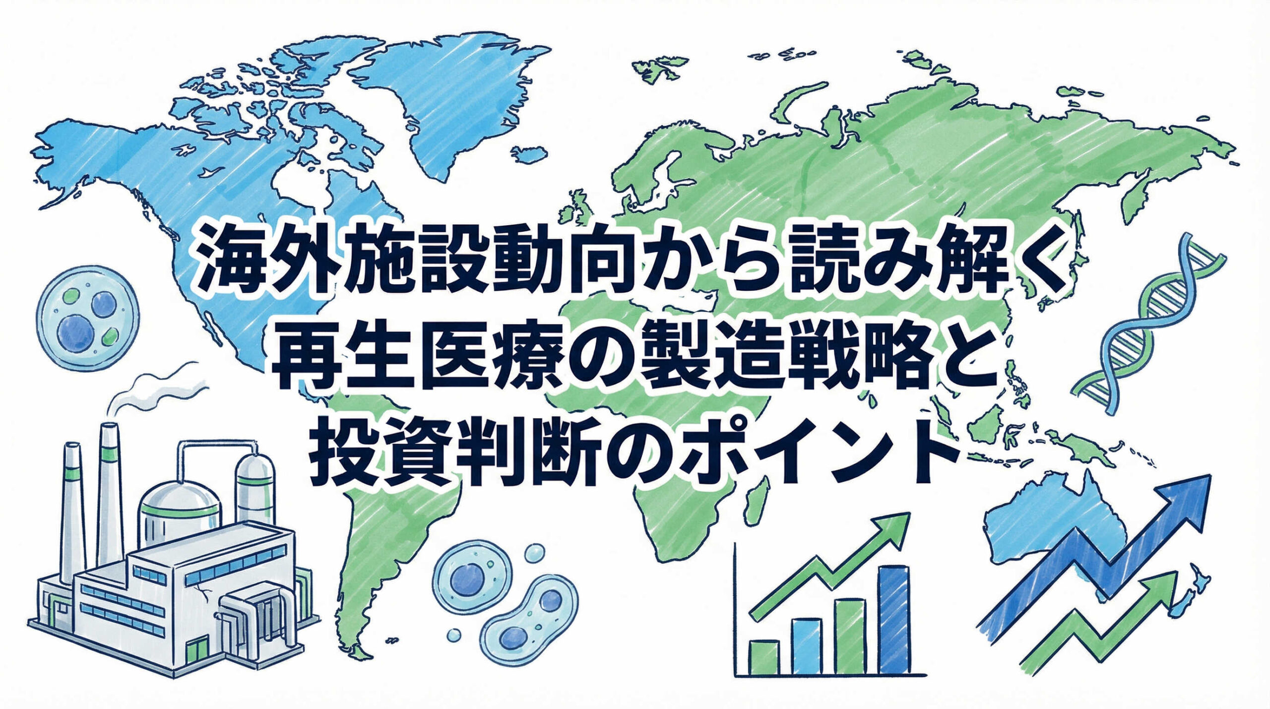 本記事では、再生医療における海外施設動向について、市場全体のトレンドから地域別・プレイヤー別の詳細、そして技術革新まで幅広く解説しました。